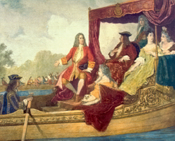 The barge was part of a rather grand flotilla which made its way up the river from the Palace of Whitehall to Chelsea, at the centre of which was a royal barge upon which King George I and members of the nobility, including various duchesses, rode.