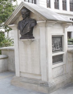 Located near the corner of New Change and Watling Street, this memorial is centred on a bust, housed in a small temple-like structure. The bust is a copy of one created in 1932 by CL Hartwell which can be seen in St Mary-le-Bow on Cheapside.