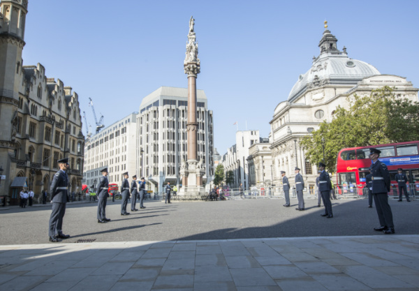 Above: FO Buckingham saluting the Battle of Britain memorial stained glass window at Westminster Abbey.