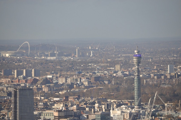 PICTURES: Top – BT Tower with Wembley in the background (Robert Speirs, licensed under CC BY-NC-ND 2.0); Right – View of BT Tower from The Monument (Dun.can, licensed under CC BY 2.0)