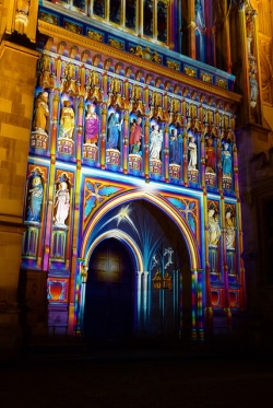 The annual festival of illumination known as Lumiere London returns to the capital for a second time from tonight with more than 50 installations lighting up streets, buildings and public spaces. London’s largest night-time festival, installations in this year’s free event – commissioned by the Mayor of London and produced by arts charity Artichoke – are clustered around six areas: King’s Cross, Fitzrovia, the West End, Mayfair, Westminster and Victoria, and South Bank and Waterloo. The installations include Lampounette – located in King’s Cross, it features giant office desk lamps, Entre les rangs – a field of thousands of flower-like reflectors in Lewis Cubitt Park, Nightlife – a luminous secret garden in Leicester Square which plays with the relationship between wild spaces and urban city life and spills out to include illuminated flamingoes flying over Chinatown, and Northern Lights – a recreation of the aurora borealis in Grosvenor Square, Mayfair. The facade of Westminster Abbey is also among the buildings to be lit up with artist Patrice Warrener commissioned to illuminate the Abbey’s West Towers and Great North Door with his work, The Light of the Spirit. There’s a free app to download and a map can be purchased online for download. For more, include a complete programme, head to www.visitlondon.com/lumiere. PICTURE: Westminster Abbey during Lumiere London last year (Paula Funnell/licensed under CC BY-NC-ND 2.0).