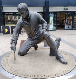 Flinders legacy lives on in the more than 100 geographical place names bearing his moniker in Australia including the iconic Flinders Street Railway Station in Victoria and the Flinders Ranges in South Australia. There’s also a statue of him in his home town of Donington and in July, 2014, the 200th anniversary of his death, a large bronze statue by Mark Richards depicting Flinders and his cat Trim (we’ll deal with Trim’s story in an upcoming post) was unveiled at Australia House by Prince William. It was later installed at Euston Station near where his grave was assumed to be (pictured above).