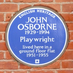 Post-war playwright John Osborne (1929-1994) was honoured with an English Heritage Blue Plaque last week at his former Hammersmith home. The announcement came 65 years after his seminal play, Look Back in Anger, was first performed at the Royal Court Theatre on 8th May, 1956. The terraced red brick property at 53 Caithness Road was his London base when he wrote Look Back in Anger, arguably his best known work. Playwright and director Sir David Hare said Osborne “had the most sensational London debut of any playwright in the English language in the 20th century”. “It was John’s brilliance and originality which led so many to help relocate the theatre at the centre of Britain’s cultural and intellectual life. Everyone who followed owes him a debt.” For more on Blue Plaques, see www.english-heritage.org.uk/visit/blue-plaques.