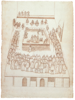 • The complex relationship between Queen Elizabeth I and Mary, Queen of Scots, is the subject of a new exhibition opening at the British Library in King’s Cross tomorrow. Highlights of Elizabeth and Mary: Royal Cousins, Rival Queens, the first major exhibition to consider both women together, include Queen Elizabeth I’s 1545 handwritten translation of her stepmother Katherine Parr’s Prayers and Meditations – a gift for her father King Henry VIII, a sonnet by Mary, Queen of Scots, which was handwritten the night before she was executed in 1587 (possibly the last thing she ever wrote), the ‘Penicuik Jewels’ which she is thought to have given away on the day of her death and Robert Beale’s eye-witness drawing depicting her entering the hall, disrobing, and placing her head on the block (pictured right). Other items on show include King Henry VIII’s Great Bible (dating from 1540, it was later inherited by Elizabeth I), Elizabeth I’s mother-of-pearl locket ring (c1575) containing miniature portraits of herself and her mother Anne Boleyn, and the warrant confining Mary, Queen of Scots, in Lochleven Castle in 1567. The exhibition is accompanied by a programme of events. Runs until 20th February. Admission charge applies. For more, see www.bl.uk/events/elizabeth-and-mary.