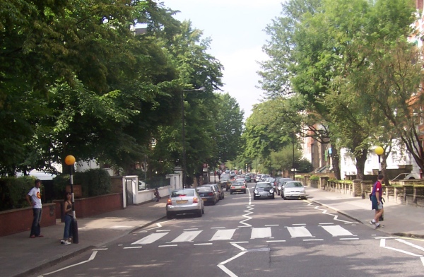 PICTURE: Looking northward up Abbey Road across the famous crossing (the studios are just beyond the crossing on the left) (WillMcC/licenced under CC BY-SA 3.0/image cropped)
