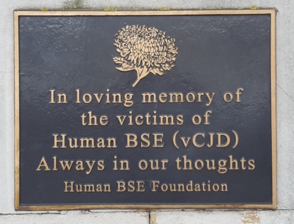 Located on the Albert Embankment outside St Thomas’ Hospital just to the south of Westminster Bridge, is a small plaque commemorating the victims of Human BSE (bovine spongiform encephalopathy), sometimes referred to as the human form of ‘Mad Cow Disease’.