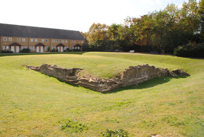 The remains of one of the lesser known former royal residences in London, King Edward III’s manor house, sit amid a grassy park on the south bank of the Thames at the corner of Bermondsey Wall East and Cathay Street in Rotherhithe.