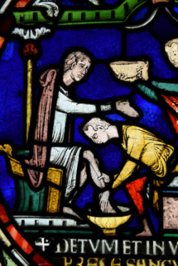 A detail from the healing of Ralph de Longeville in the Miracle window, Canterbury Cathedral, early 1200s. © The Chapter, Canterbury Cathedral.