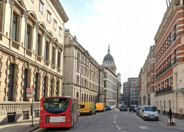 Looking south down Giltspur Street, with the dome of the Old Bailey visible, in 2018. PICTURE: Courtesy of Google Maps