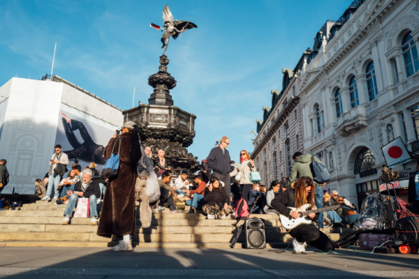 The statue of Eros at the heart of Piccadilly Circus.