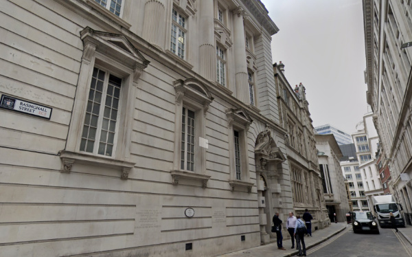 Looking north up Basinghall Street from Gresham Street. The buildings on the left are part of the Guildhall complex. PICTURE: Google Maps