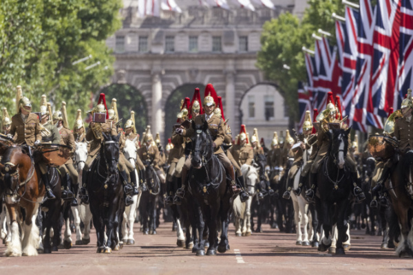 The King’s Birthday Parade took place in central London on Saturday featuring some 242 military working horses, 250 military musicians, 40 pipers and drummers, and more than 1,000 dual role soldiers of the British Army’s Household Division. The parade is a gift from the British Army’s Household Division to the King and is traditionally held on the second Saturday in June, regardless of the Sovereign’s actual date of birth.