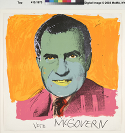 The first major exhibition focusing on contemporary American printmaking has opened in the Sainsbury Exhibitions Gallery of The British Museum. The American Dream: pop to the present features more than 200 works from 70 artists including Andy Warhol, Jasper Johns, Robert Rauschenberg, Ed Ruscha, Chuck Close, Louise Bourgeois and Kara Walker. Including loans from institutions such as The National Gallery of Art in Washington, DC, as well the museum’s own collection, the works span six decades – from the moment when pop art arrived in the New York and West Coast scene of the early 1960s, to the rise of minimalism, conceptual art and photorealism in the 1970s, and through to the practices of today’s artists. Among the works on show are Warhol’s Marilyn, Willie Cole’s Stowage and Claes Oldenburg’s sculpture of the Three-Way Plug. Admission charges apply. Runs until 18th June. For more, see www.americandreamexhibition.org. PICTURE: Andy Warhol (1928–1987), ‘Vote McGovern’, Colour screenprint/© 2016 The Andy Warhol Foundation for the Visual Arts, Inc./Artists Rights Society (ARS), New York and DACS, London.