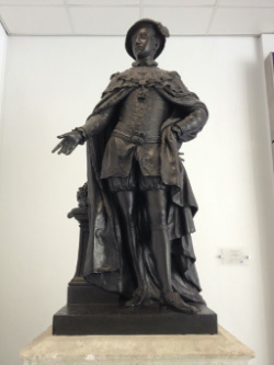 The second of the two statues is a bronze figure in period dress which was created by sculptor Peter Scheemakers in 1737.