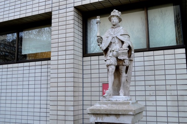 The oldest of the statues, now located outside the north entrance to the hospital’s North Wing on Lambeth Palace Road, was designed by Nathaniel Hanwell and carved from Purbeck limestone by Thomas Cartwright in 1682.