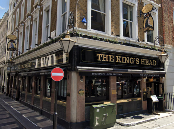 Located at 10 Stafford Street (within walking distance of current royal residences at Buckingham and St James’s Palace), this pub dates back to at least 1710 and has gone through several name changes including, apparently, Shelley’s Hotel and The King John’s Head, but has now returned to its original name of the King’s Head.