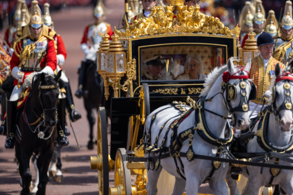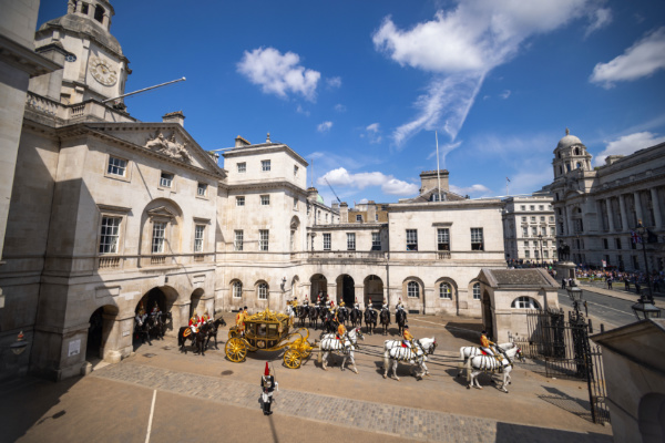 • At 1pm, the King and Queen will return from Westminster Abbey to Buckingham Palace in The Coronation Procession. They will be riding in the 260-year-old Gold State Coach that has been used in every coronation since that of William IV and accompanied by almost 4,000 members of the armed forces in what’s been called the largest ceremonial military operation in recent decades. Representatives of Commonwealth nations and British Overseas Territories will also take part in the return procession. The route will be the reverse of the outgoing route and see the procession travel back through Parliament Square (lined with an honour guard of 100 members of the Royal British Legion) and up Whitehall to Trafalgar Square, turning left to travel through Admiralty Arch and back down The Mall. Reaching Buckingham Palace, the King and Queen will receive a Royal Salute from the armed forces who have been escorting them followed by three cheers.