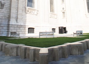 The marked out chapterhouse (pictured above – the chairs are standing inside the chapterhouse) was unveiled in 2008 following a £3.8 million redevelopment of the South Churchyard, itself part of the bigger, recently completed, overhaul of the entire cathedral).