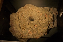 PICTURE: A ceiling boss from Merton Priory which still bears traces of its original red paint and guilding. It was found during excavations at Nonsuch Palace in 1959-60 is now on display in the Museum of London. Photograph by Mike Peel (www.mikepeel.net) (licensed under CC-BY-SA-4.0).
