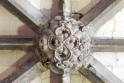 The vaulted chamber incorporates tiercerons – ribs set between the transverse and diagonal ribs to form simple fans and also features a series of sculpted bosses.