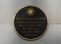 Baldwin is believed to have studied at Oxford prior to coming to London where, from 1547, he worked with the printer Edward Whitchurch – who had apparently set up shop at Wynkyn de Worde’s former printworks at the Sign of the Sun (now at the Stationer’s Hall, just off Ludgate Hill – pictured) – as a corrector.