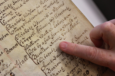 A team of volunteers are searching through historical records for evidence of people buried at the Bedlam burial ground in the 16th and 17th centuries. The 15 member team are carrying out the work at the London Metropolitan Archives as archaeologists prepare to excavate 3,000 skeletons from the former burial site next year in anticipation of the construction of the new Liverpool Street Crossrail Station – part of the £14.8 billion cross London Crossrail project. About 400 skeletons have already been removed during preliminary works. Located near Bethlem Hospital, the burial ground opened in the 16th century as part of the city’s response to the plague and was the first burial ground in London not associated with a parish church. Among those buried here were Robert Lockyer, a soldier executed under the orders of Oliver Cromwell for leading the Bishopsgate mutiny of 1649, and Leveller John Lilburne. Crossrail are keen to hear from members of the public who may be able to provide further details of burials at Bedlam – if you can help, email bedlamrecords@crossrail.co.uk.