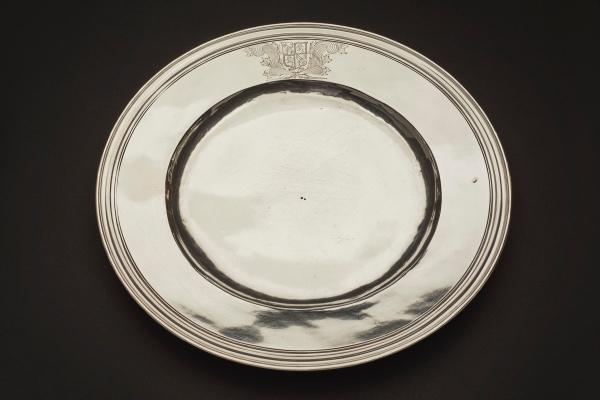 A silver trencher plate – one of only three silver pieces in the world known to have belonged to 17th century diarist Samuel Pepys (and the only one on display in the UK, the other two being in the US) – has gone on show in the Museum of London’s ‘War, Plague and Fire’ gallery following its recent acquisition. The plate, which was only recently recognised as belonging to Pepys – a naval administrator and MP, bears his coat-of-arms on the rim while the underside features London hallmarks testifying to the metal’s purity. The plate is also stamped with a “date letter” representing 1681-82 as the year it was made along with an MK in a lozenge, the maker’s mark of the workshop of Mary King in Foster Lane (the date 1681 also appears scratched on the surface but this was done at a later date). Knife and fork scratch marks are also visible on the trencher which may have been among the silver objects Pepys boasted about serving his guests with in his diary instead of the less expensive pewter. Admission to see the plate is free. For more, see www.museumoflondon.org.uk/discover/samuel-pepys-silver-plate. PICTURES: © Museum of London.