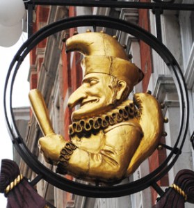 Mr Punch is still celebrated every year at Covent Garden’s May Fayre and Puppet Festival (held close to 9th May – not only the day Mr Pepys saw the puppet but now regarded as Mr Punch’s ‘birthday’) and there is a fellowship of Punch and Judy performers – The Punch & Judy Fellowship – who aim to “preserve, promote and protect” the traditions of the puppet show. Punch can also be seen on the facade of the Punch Tavern in Fleet Street – the sign is pictured above (keep on eye out for our upcoming Pub Signs look at the pub’s history).