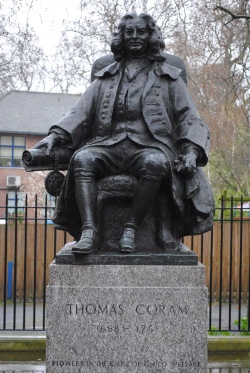 PICTURES: Top – Looking across Brunswick Square Gardens (Google Maps); Right – Thomas Coram (David Adams).