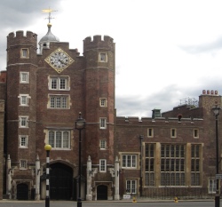 The chapel, which hosted the christening of Prince George in 2013 and Prince Louis in 2018, was built in about 1540 and substantially altered since, including under the eye of Sir Robert Smirke in 1837.  It was built on a north-south axis rather than the more usual east-west (a sizeable window on its northern wall can be seen to the right of the palace’s main gatehouse – see picture).