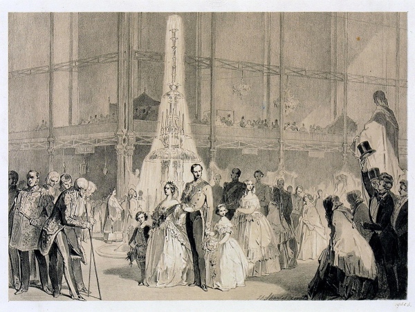 PICTURE: ‘Her Majesty and the Princes passing through the Crystal Palace’, 1851 Sharles, H (artist) ; Ackermann & Co. (printer and publisher)/© Victoria and Albert Museum London.