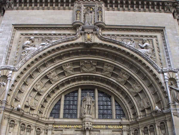 As part of the redevelopment of the museum in the late 19th and early 20th centuries (when it was also renamed the Victoria and Albert Museum despite the Queen’s wishes it be called the Albert Museum), statues of the royal couple were installed above the museum’s main entrance in Cromwell Road with Prince Albert positioned just below the Queen who is flanked  by St George and St Michael (see above).