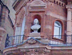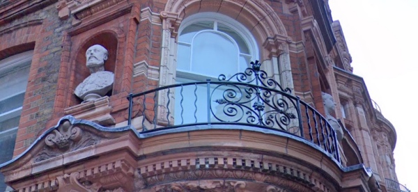 The Grade II-listed building on which the busts are located is part of a development constructed in the mid-1880s by James Trant Smith. The sculptor is apparently unknown.