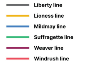 Each of the new lines’ names reflects an aspect of the city’s culture and history. The Lioness line, which runs from Euston to Watford Junction through Wembly, honours the achievements and legacy of England women’s football team while the the Mildmay line, which runs from Stratford to Richmond/Clapham Junction through Dalston, honours a small charitable hospital in Shoreditch that played a pivotal role in the HIV/AIDS crisis in the 1980s and Windrush Line, which runs from Highbury & Islington to Clapham Junction/New Cross/Crystal Palace/West Croydon, honours the Windrush generation and runs through areas with strong ties to Caribbean communities today, such as Dalston Junction, Peckham Rye and West Croydon.