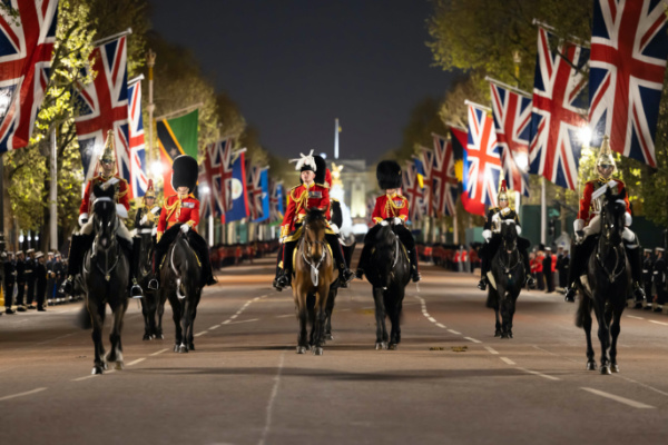 • At 1pm, the King and Queen will return from Westminster Abbey to Buckingham Palace in The Coronation Procession. They will be riding in the 260-year-old Gold State Coach that has been used in every coronation since that of William IV and accompanied by almost 4,000 members of the armed forces in what’s been called the largest ceremonial military operation in recent decades. Representatives of Commonwealth nations and British Overseas Territories will also take part in the return procession. The route will be the reverse of the outgoing route and see the procession travel back through Parliament Square (lined with an honour guard of 100 members of the Royal British Legion) and up Whitehall to Trafalgar Square, turning left to travel through Admiralty Arch and back down The Mall. Reaching Buckingham Palace, the King and Queen will receive a Royal Salute from the armed forces who have been escorting them followed by three cheers.