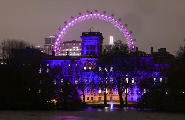 As the world reacts to the Russian attack on Ukraine, on 24th February, Number 10 Downing Street, home of the British Prime Minister, and, below, the Foreign, Commonwealth and Development Office, in Whitehall are lit in the colours of the Ukrainian flag as the UK “stands in solidarity with the people of Ukraine“.