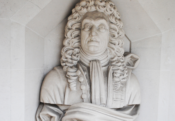 Interestingly, the Grade I-listed, Portland stone tower is said to be the only one built by Wren’s office which is battered – that is, wider at the bottom than the top. It’s topped by some obelisk-shaped pinnacles and a weather vane in the shape of a sailing ship which was taken from St Mildred, Poultry (was demolished in 1872).