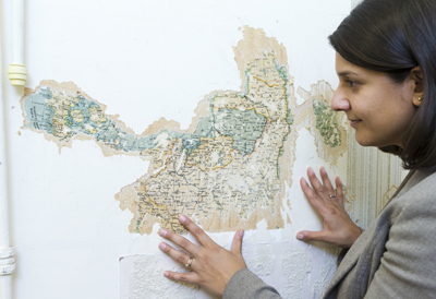 Annie Kemkaran-Smith, curator at Greenwich’s art deco masterpiece Eltham Palace, examines the 1930s ‘map room’, one of five new rooms to be opened at the palace this spring following a major renovation by English Heritage. Alongside the map room – to be opened for the first time in a decade following a renovation for which English Heritage has launched a £25,000 appeal – other rooms include the luxury wartime bunker, a basement billiards room, a walk-in wardrobe and two new bedrooms. The project, work on which started earlier this month, also includes restoration of the gardens, the creation of a new visitor centre, shop and cafe in former glasshouses. The former childhood home of King Henry VIII, Eltham Palace was transformed in the 1930s by art collectors and philanthropists Stephen and Virginia Courtauld and features an interior now boasting a mix of art deco, ocean-liner styles and Swedish design with then cutting-edge features such as under-floor heating, multi-room sound systems and a centralised vacuum system. The palace will remain open to the public on Sundays over winter with the new rooms to be opened in April. For more, see www.english-heritage.org.uk/daysout/properties/eltham-palace-and-gardens/.