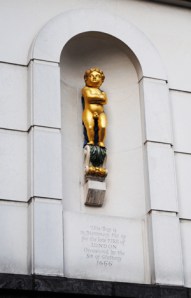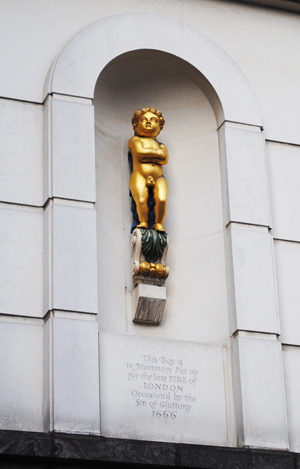 St Bartholomew’s Hospital can be found on the east side of the street. On the west side, at the junction with Cock Lane is located Pye Corner with its famous statue of a golden boy (said to be the place where the Great Fire of London was finally stopped).