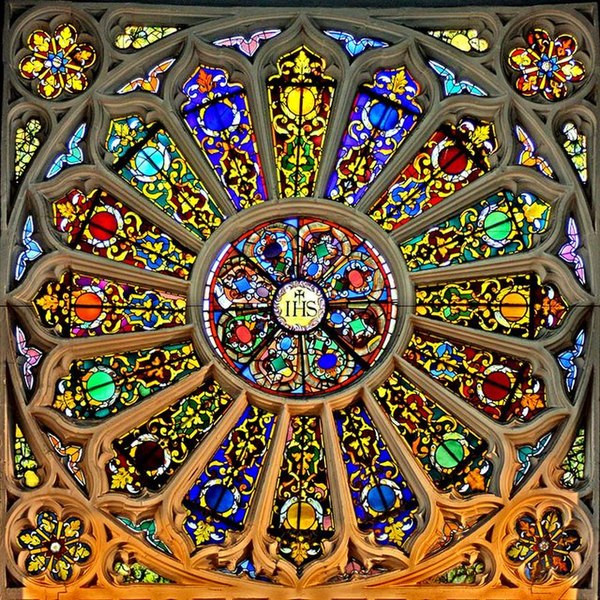 Said to have been modelled on a rose window once inside Old St Paul’s Cathedral (which was destroyed in the Great Fire of London), the window, also known as Catherine (Katharine) Wheel, features some beautiful examples of 17th century stained glass.