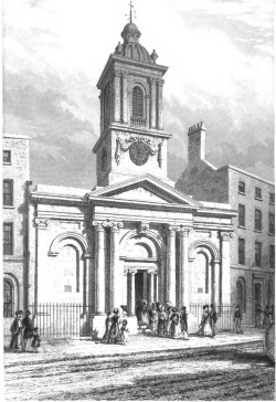 By 1788, the church had, however, fallen into such disrepair that it had to be rebuilt and the new building, designed by Jesse Gibson and located further back from Broad Street (into which it had previously projected), was consecrated in November, 1792.