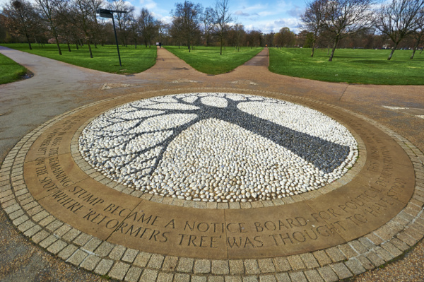 Subsequent roadworks left the arch in its current position on a traffic island. It stands close to where the notorious gallows known as the “Tyburn Tree” once stood.