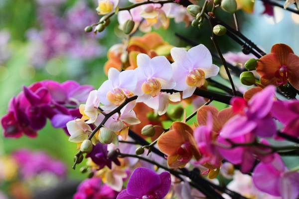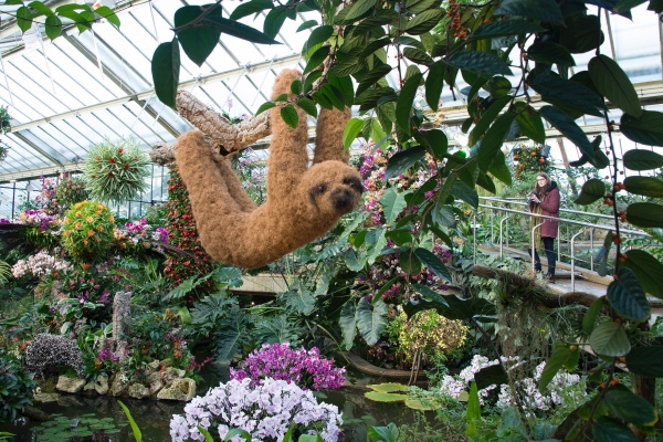 The 24th annual Kew Orchid Festival is underway in west London with displays inspired by the flora and fauna of Colombia. For more, see www.kew.org. PICTURES: Above – Orchid stems (Ines Stuart Davidson); Below – A jaguar prowls among the orchids (photo by Jeff Eden); The Legend of El Dorado in a yellow orchid display (Jeff Eden); A sloth in a “carnival of animals” (Jeff Eden); and, Vanda orchids in a display representing the rainbow river, Cano Cristales (Jeff Eden). All pictures courtesy of Kew Gardens.