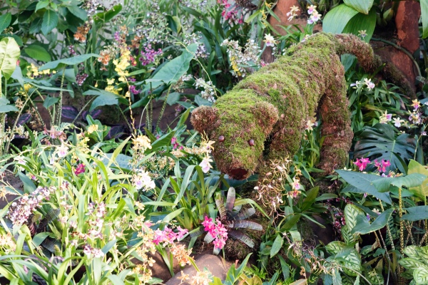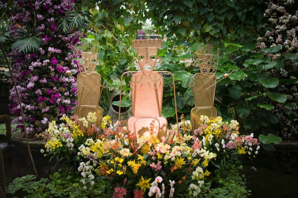The 24th annual Kew Orchid Festival is underway in west London with displays inspired by the flora and fauna of Colombia. For more, see www.kew.org. PICTURES: Above – Orchid stems (Ines Stuart Davidson); Below – A jaguar prowls among the orchids (photo by Jeff Eden); The Legend of El Dorado in a yellow orchid display (Jeff Eden); A sloth in a “carnival of animals” (Jeff Eden); and, Vanda orchids in a display representing the rainbow river, Cano Cristales (Jeff Eden). All pictures courtesy of Kew Gardens.