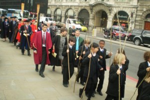 Freedom ceremonies take place in the Chamberlain’s Court at Guildhall and are usually conducted by the Clerk of the Court or his assistant. Prospective freemen read the ‘Declaration of a Freeman’ – which, among other things they swear allegiance to the King and obedience to Lord Mayor of London – and sign the Freeman’s Declaration Book.