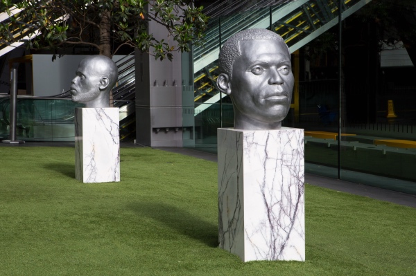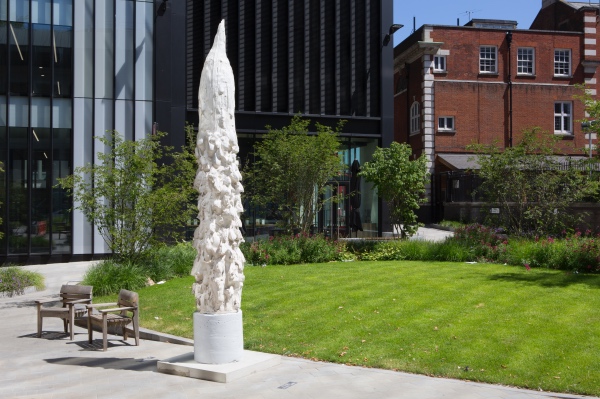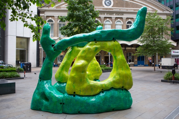 Sculpture in the City is back in the Square Mile, this year featuring 18 artworks ranging from Jean-Luc Moulène’s Body, an aerodynamic tribute to the automobile as sculpture (located in Undershaft – pictured above), to Thomas J Price’s Numen (Shifting Votive) One & Two, an exploration of the ancient Greek, Roman and Egyptian traditions of monumental sculpture (located under The Leadenhall Building – pictured below). Other sculptural works included in this, the 8th edition of the annual event, include Juliana Cerceira Leite’s Climb, a three metre tall obelisk made from the inside out (located in Mitre Square – pictured second below), Sarah Lucas’ Perceval, a life-size horse and cart evocative of the traditional china ornaments that once took pride of place on British mantlepieces (located in Cullum Street – pictured third below), and Karen Tang’s Synapsid, a vivid globular sculpture which brings to mind sci-fi invasion scenarios (outside Fenchurch Street station – pictured fourth below). And, for the first time, the event also includes two sound projects: Marina Abramovic’s Tree, which those passing near a tree at 99 Bishopsgate with insistent, repetitive and distorted birdsong, and Miroslaw Balka’s The Great Escape which, located in Hartsthorn Alley, features the film of the same name’s theme song being whistled repeatedly in a series of slightly different renditions. The display can be seen until April next year – for a map of all the locations, head to www.sculptureinthecity.org.uk. ALL PICTURES: Nick Turpin.