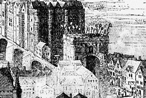 Located at the south end of London Bridge, this gate guarded the bridge entry in medieval times. When the first gate was built here remains something of a mystery but it is known that the first stone bridge, built in the late 1100s under the direction of priest Peter de Colechurch (it opened in 1209), certainly included a gatehouse known as the Stone Gateway (referred to by some as Bridge Gate) at the southern end.