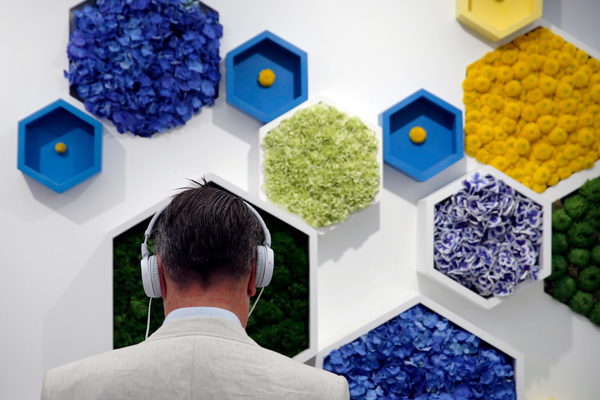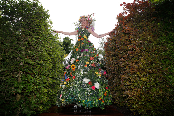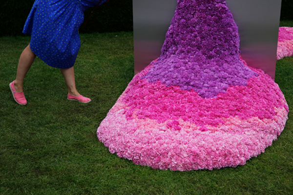 Above, a visitor views “Neoteric” a floral installation by Robert Hornsby.