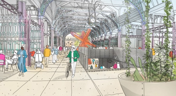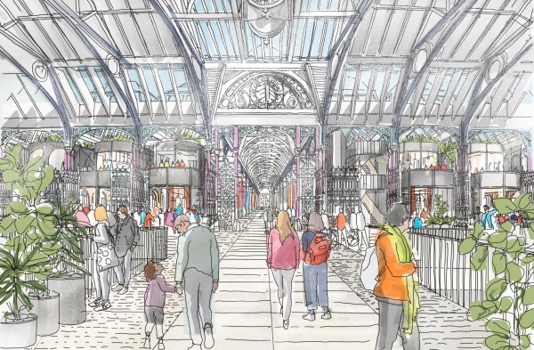 The City of London Corporation has unveiled early ideas for the redevelopment of the Smithfield Market following the proposed relocation of the meat market to Dagenham Dock along with Billingsgate and New Spitalfields. The work of architecture practice Studio Egret West, the new designs see the Grade II*-listed East and West Smithfield buildings and Grade II-listed Rotunda transformed for public and commercial use including removing some of the modern additions to the market buildings, such as loading bays and cold rooms, to reveal the elegance of the original Victorian structure and create four large, clear “halls” under the oversailing roof. While there’s been a meat market on the site since the 12th century, the Victorian-era markets buildings, featuring ornate iron frames, were built between 1866 and 1883. Members of the public are able to share their feedback on the initial concept drawings via the website, www.wholesalemarkets.co.uk/smithfield until 4th September.