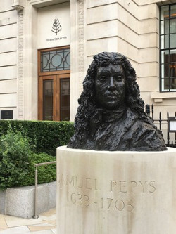 There’s a now a recently redeveloped garden where the Navy Office once stood in which can be found a bust of Pepys. The work of late British sculptor Karin Jonzen, it was first placed in an earlier garden on the site by the Pepys Society in 1983.